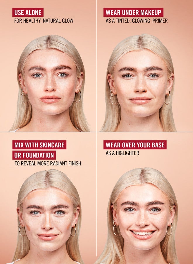 Wear it alone, for a healthy, natural glow; under makeup as a tinted, glowing primer; mixed with your favourite skincare or foundation to reveal a more radiant finish; or over your base as a highlighter.