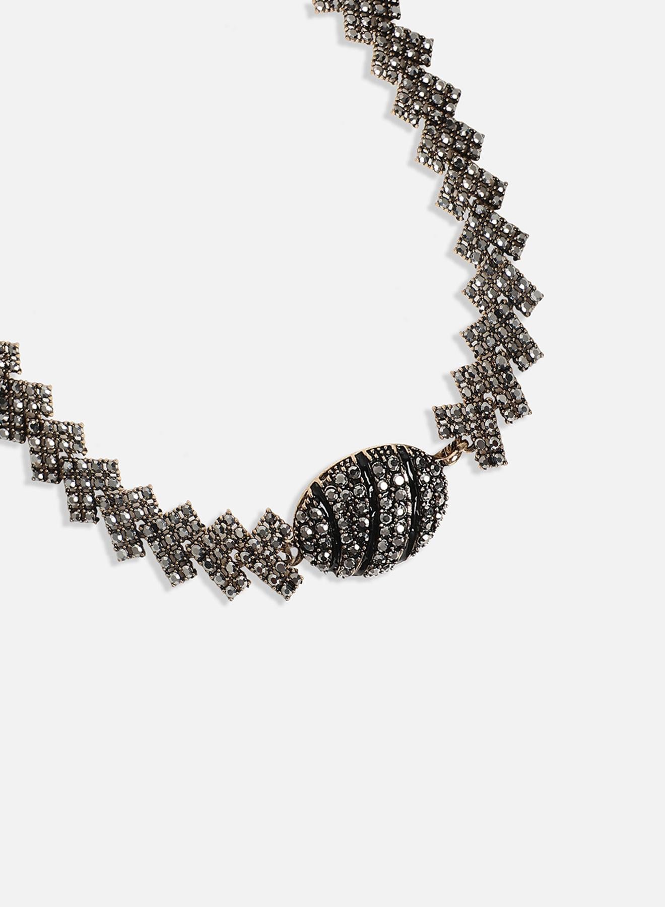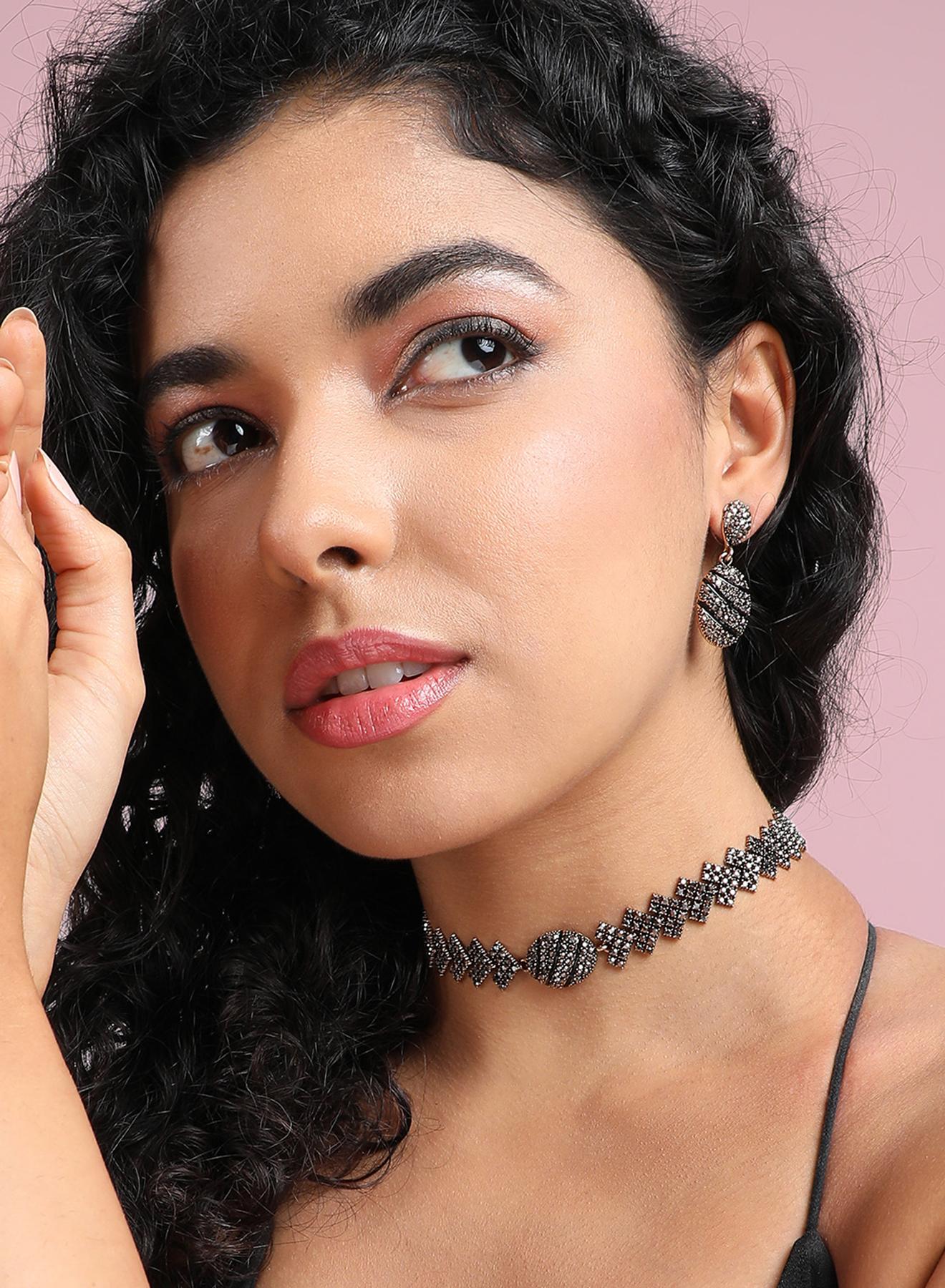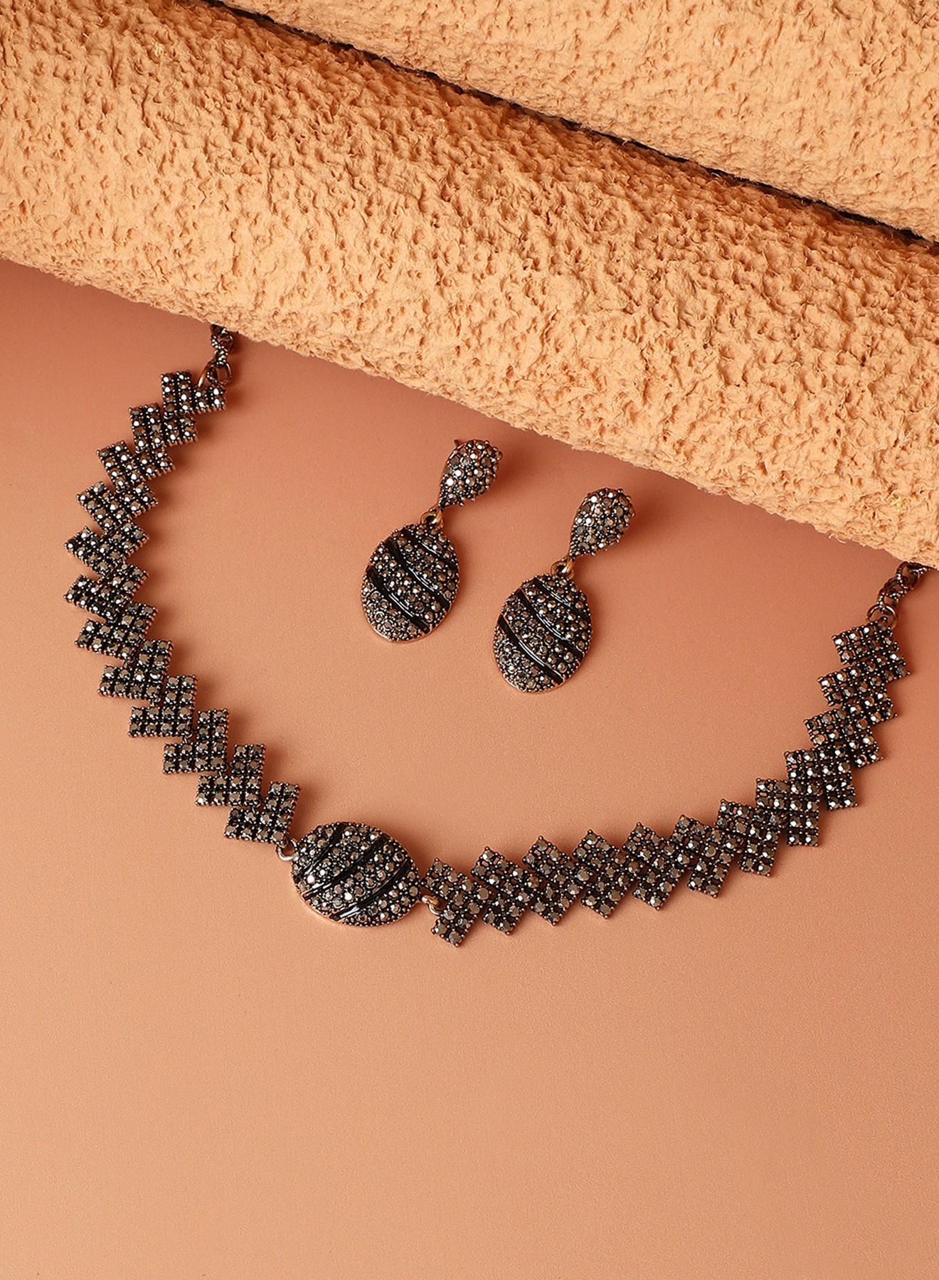 طقم مجوهرات كريستال بيضاوي - فضي داكن