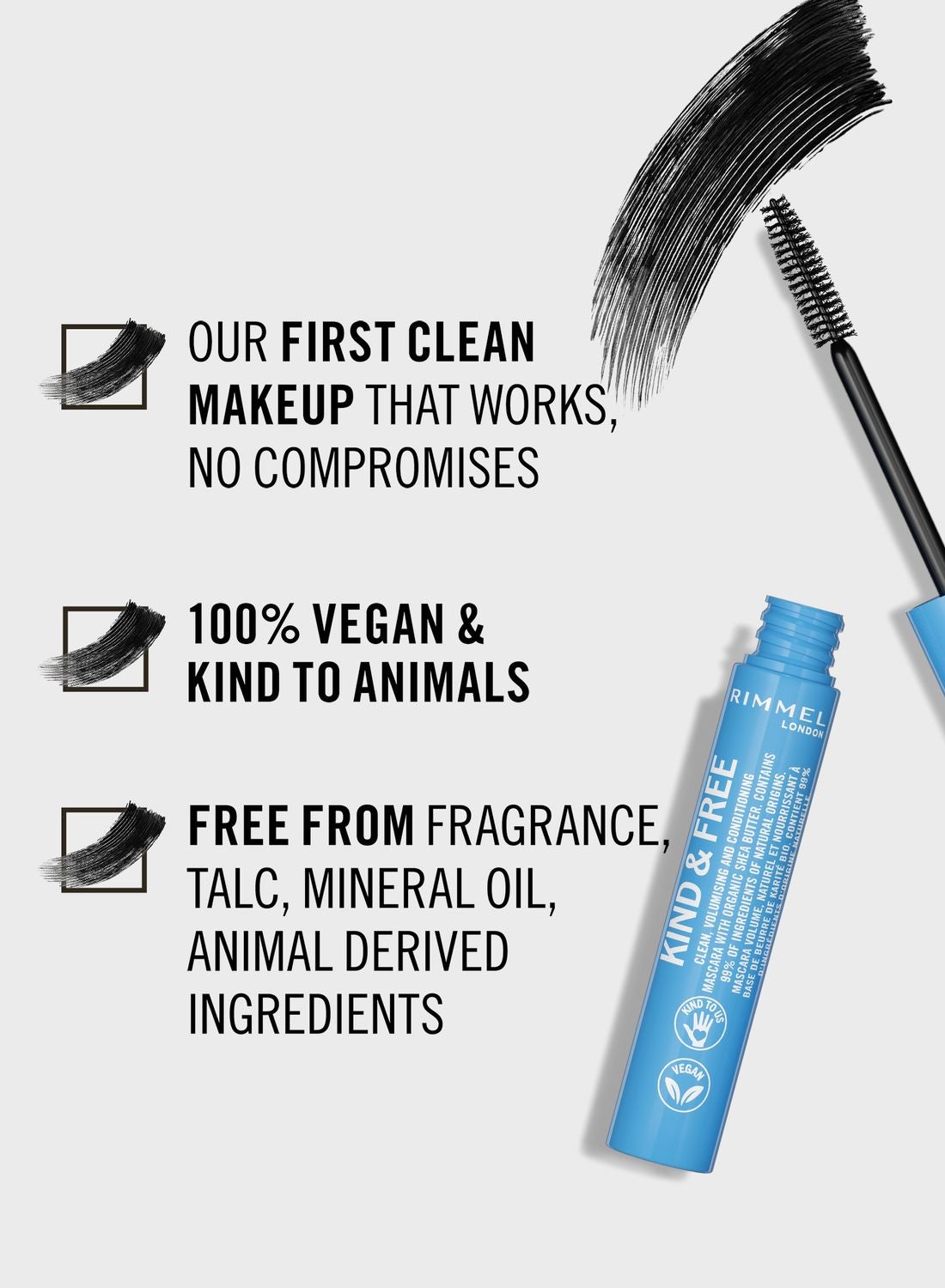 نقدم ماسكارا ريميل لندن كيند وفري فوليوم، أول ماسكارا نظيفة توفر كثافة وطول لمدة تصل إلى 36 ساعة. ارفعي مستوى مكياج عينيك من خلال تركيبة الشمع الكريمية التي تمنحك حجما وطولًا رائعين للحصول على شكل مميز للرموش. مزيج شمعي طبيعي يفصل الرموش ويطيلها ويملؤها ثباتا طويل الأمد لا يتقشر أو يتزحزح. هذه الماسكارا التي لم تختبر على الحيوان تغلف الرموش بصبغة غنية لتحديد جمال عينيك برموش مثالية خالية من التكتلات.