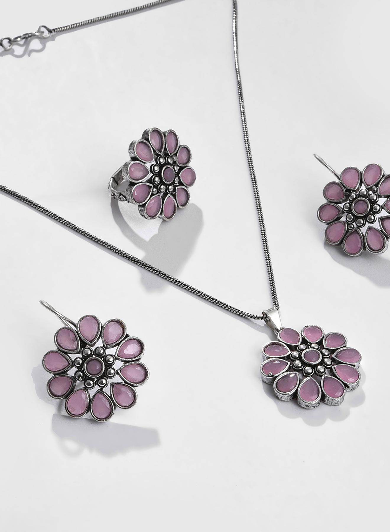 مجموعة زهرية صناعية مرصعة بأحجار أرجوانية