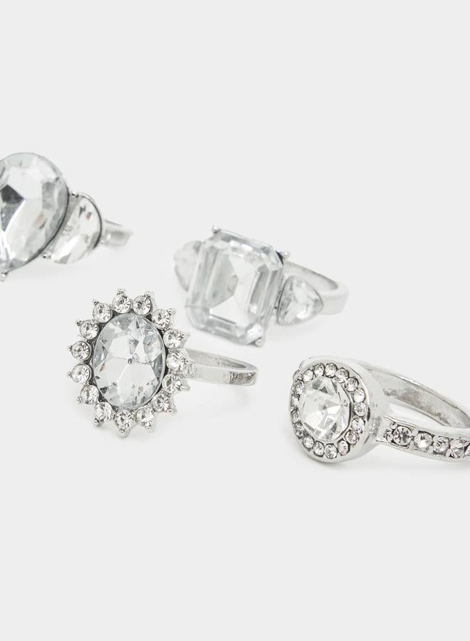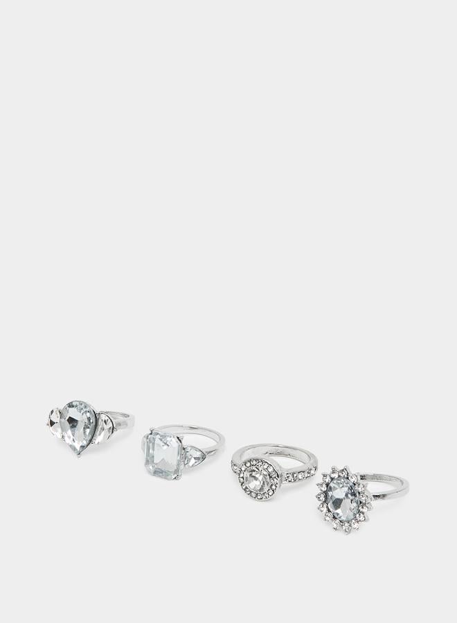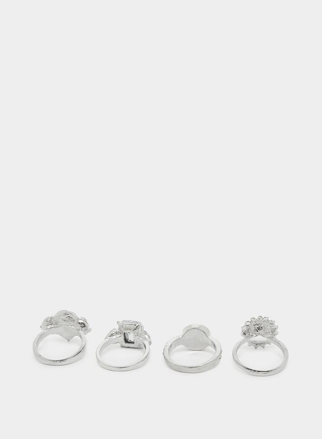 مجموعة من 4 خواتم مزينة باحجار كريمة