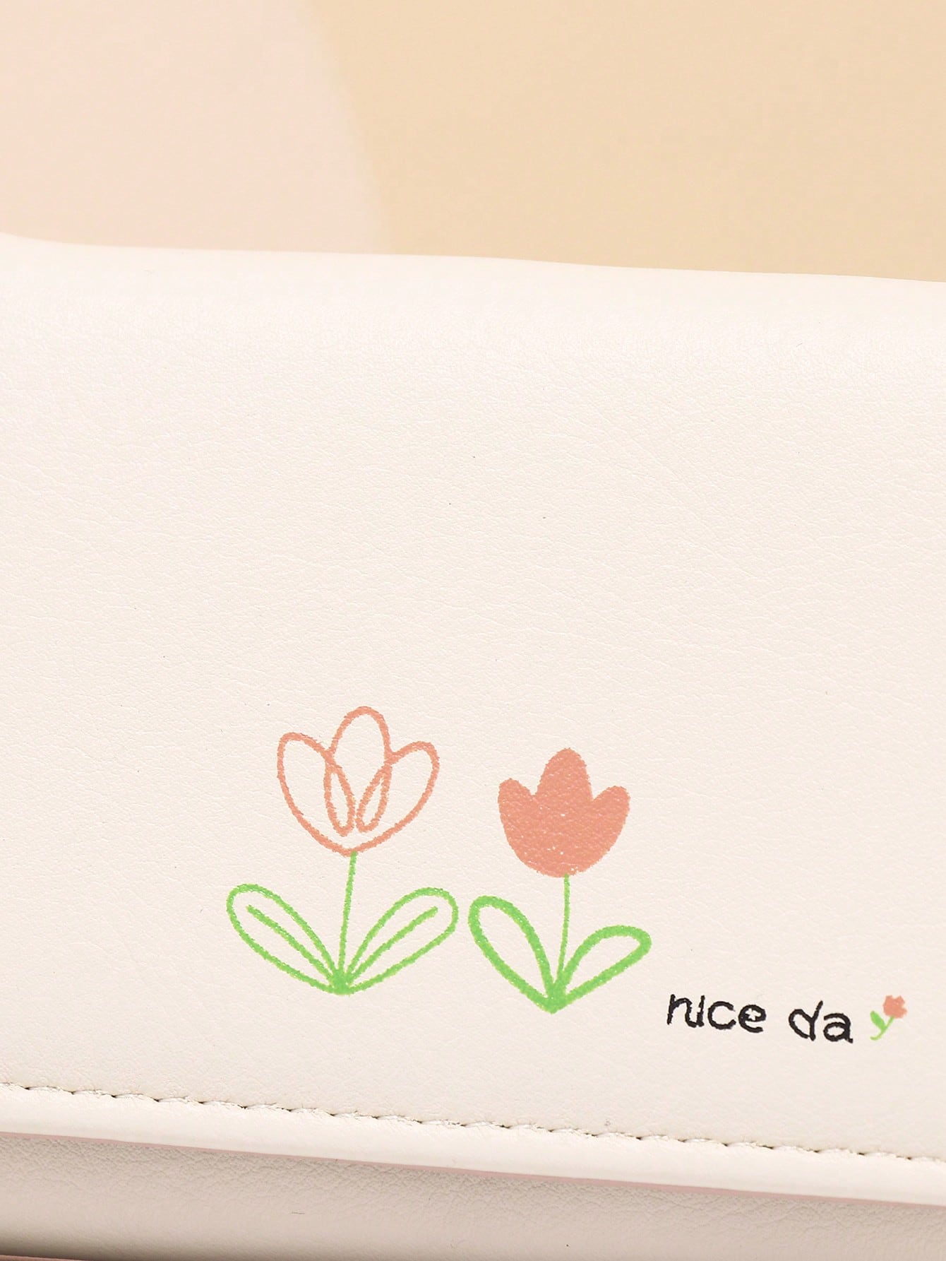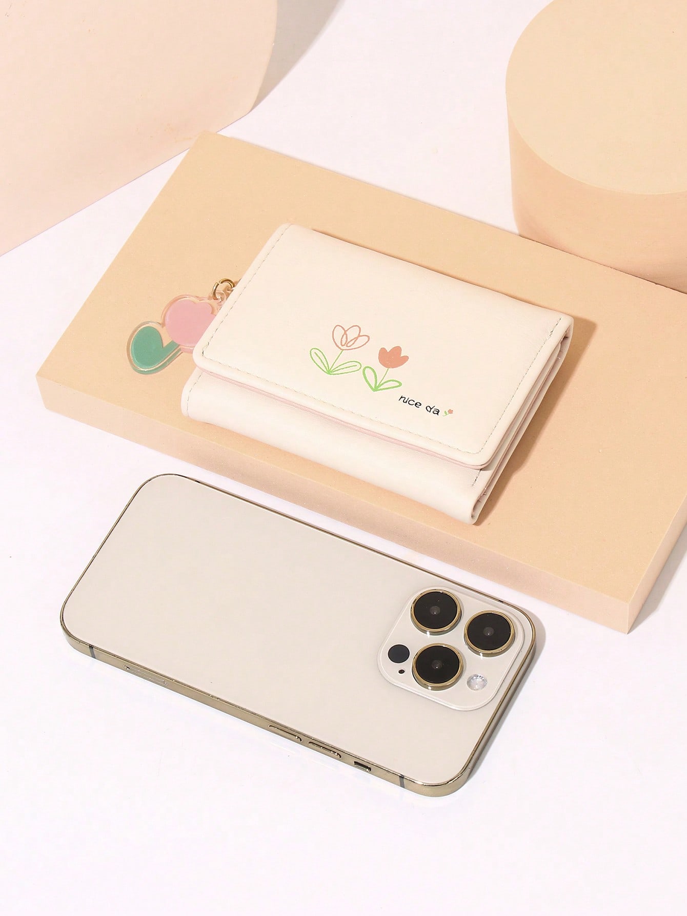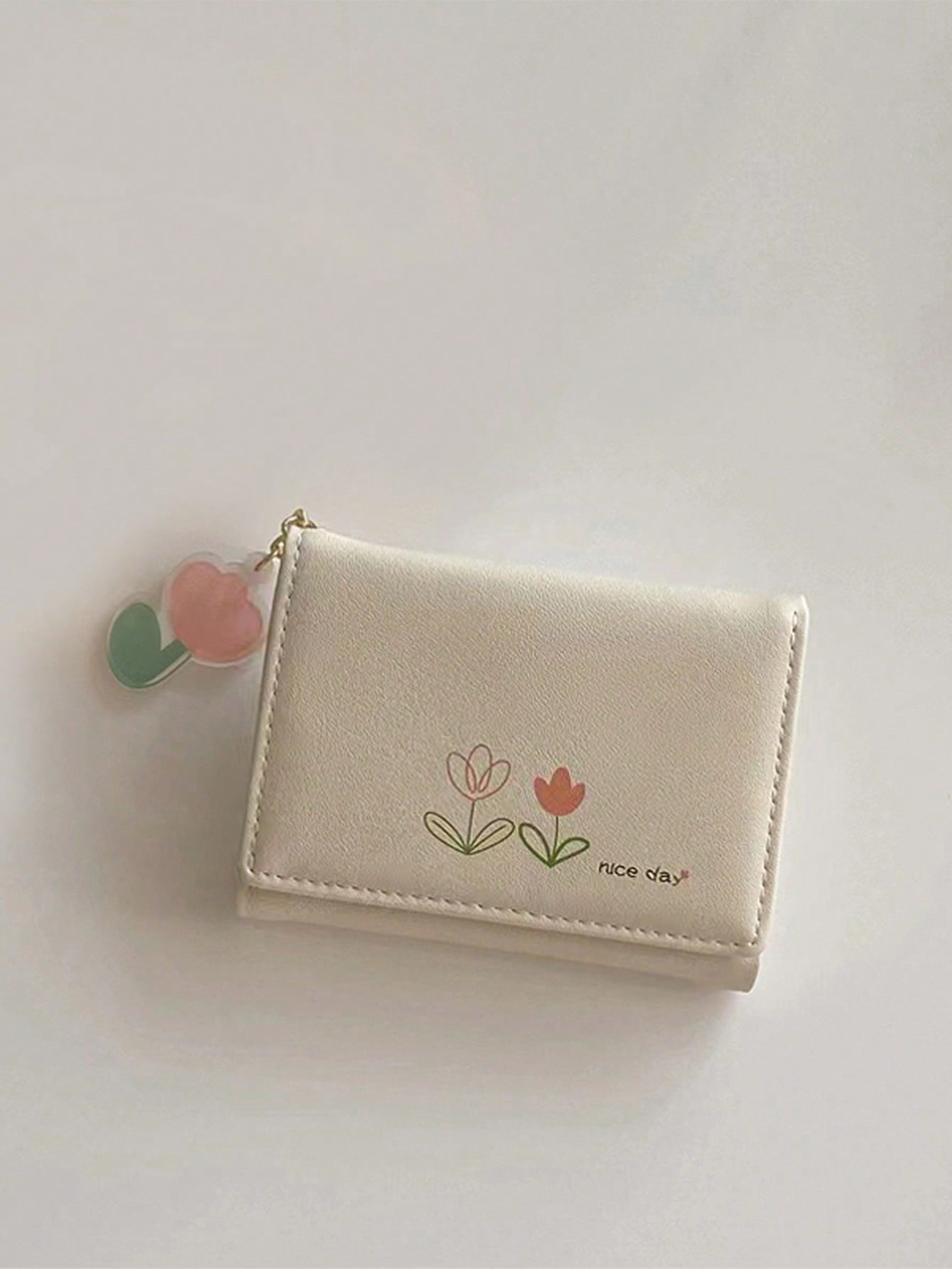 محفظة بطاقات ذات طيات ثلاثية مزينة بنقش الأزهار